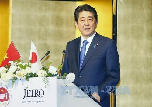 Thủ tướng Nhật Bản Shinzo Abe phát biểu. Ảnh: Thống Nhất – TTXVN.