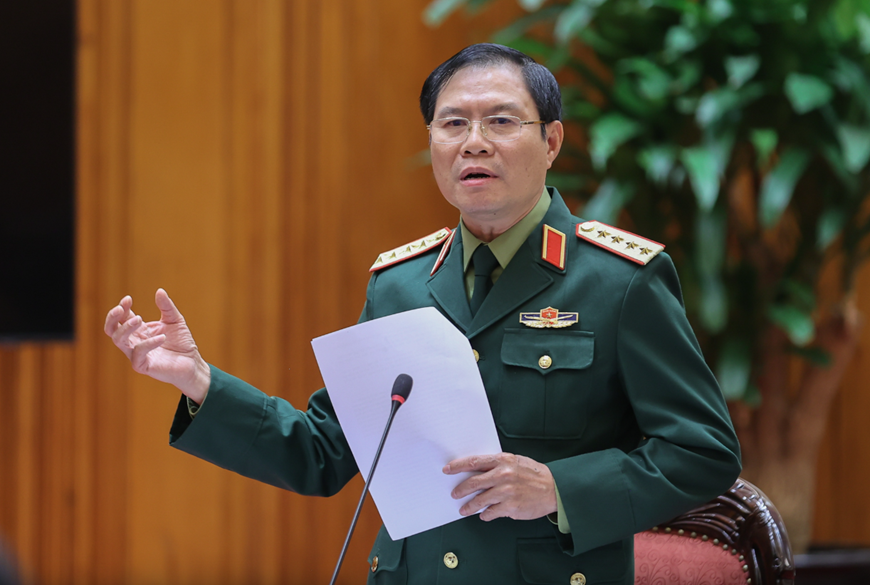 | Đại tướng Nguyễn Tân Cương, Ủy viên Trung ương Đảng, Ủy viên Thường vụ Quân ủy Trung ương, Tổng Tham mưu trưởng, Thứ trưởng Bộ Quốc phòng phát biểu. Ảnh: chinhphu.vn |