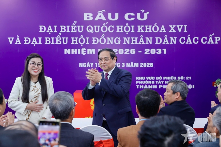 Trò chuyện với cử tri Khu vực bỏ phiếu số 21, Thủ tướng Phạm Minh Chính mong muốn cử tri thực hiện quyền làm chủ của mình trong xây dựng Nhà nước pháp quyền xã hội chủ nghĩa của dân, do dân, vì nhân dân; sáng suốt lựa chọn những người xứng đáng đại diện cho ý chí, nguyện vọng của mình vào Quốc hội khóa XVI và đại biểu Hội đồng nhân dân các cấp nhiệm kỳ 2026-2031; đóng góp vào xây dựng đất nước trong kỷ nguyên mới phát triển giàu mạnh, văn minh, phồn vinh, hạnh phúc, đời sống người dân ngày càng hạnh phúc, ấm no.