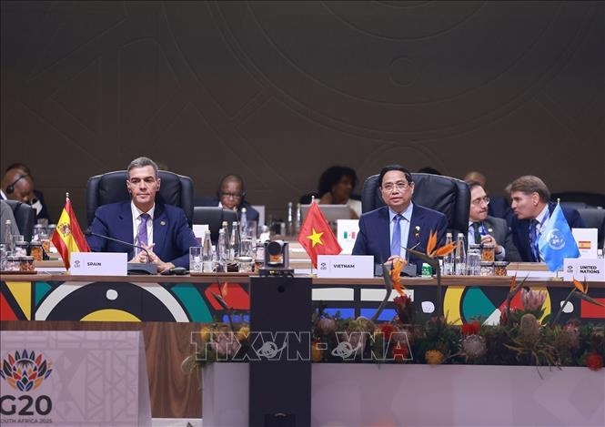 Phát biểu tại Phiên thảo luận, Thủ tướng Phạm Minh Chính hoan nghênh Nam Phi lựa chọn chủ đề “Khoáng sản chiến lược, việc làm bền vững và trí tuệ nhân tạo”, phản ánh đúng 3 chuyển động lớn của thế giới hiện nay: Đó là chuyển đổi xanh, chuyển đổi số và chuyển đổi nhân khẩu – lao động. Thủ tướng chỉ rõ sự bùng nổ của khoa học – công nghệ, đặc biệt là AI, đang định hình lại phương thức sản xuất và phân công lao động quốc tế, tạo nhu cầu khổng lồ về năng lượng và khoáng sản chiến lược. Đây là cơ hội để các quốc gia bứt phá, nhưng cũng tiềm ẩn nhiều rủi ro về đứt gãy chuỗi cung ứng, tụt hậu về quản trị, đòi hỏi các nỗ lực chung của toàn cầu, đặc biệt là vai trò tiên phong của G20.