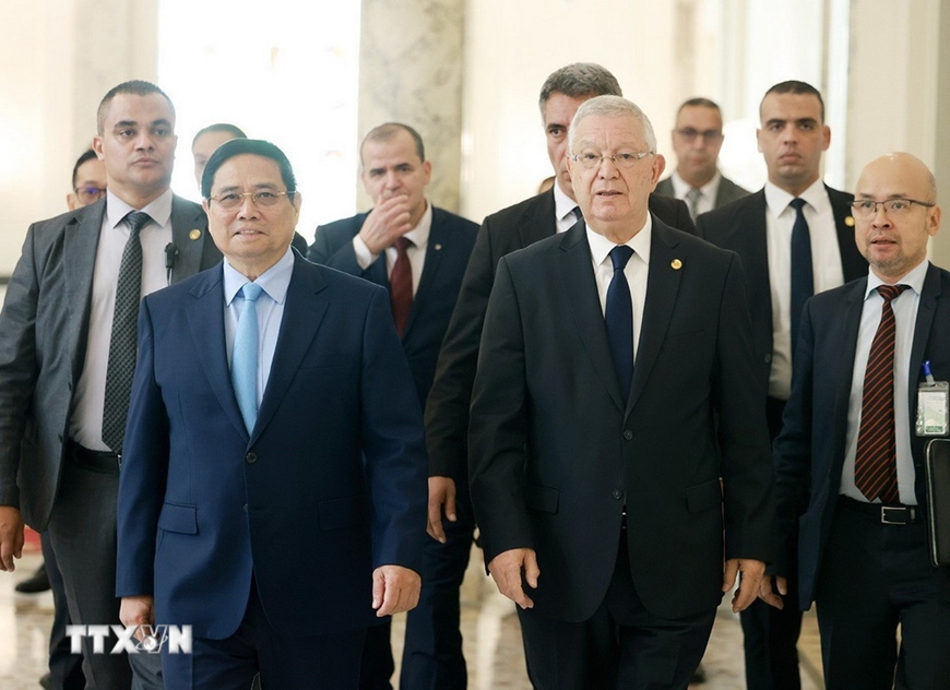 Thủ tướng Phạm Minh Chính chuyển lời thăm hỏi của Tổng Bí thư Tô Lâm, Chủ tịch nước Lương Cường và Chủ tịch Quốc hội Trần Thanh Mẫn tới Chủ tịch Thượng viện Azzouz Nasri và các lãnh đạo cấp cao Algeria.