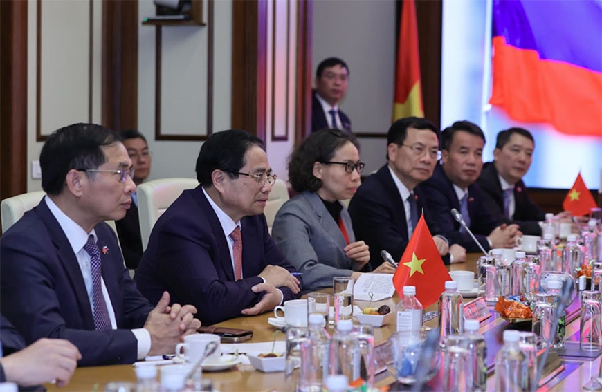 Thủ tướng đề nghị Zarubezhneft phối hợp với Petrovietnam tiếp tục nghiên cứu, mở rộng hoạt động đầu tư các dự án thăm dò khai thác dầu khí mới tại Việt Nam và Nga, bảo đảm tuân thủ quy định của pháp luật hai nước, hài hòa lợi ích, hiệu quả đầu tư.