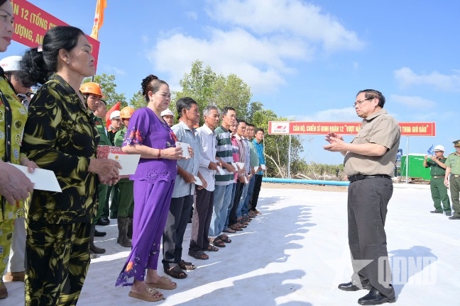 Sáng 28-12, Ủy viên Bộ Chính trị, Thủ tướng Phạm Minh Chính thăm, tặng quà người lao động và làm việc với các nhà thầu, đơn vị thi công về tiến độ triển khai 2 dự án: Cao tốc Cà Mau - Đất Mũi và tuyến đường ra đảo Hòn Khoai.