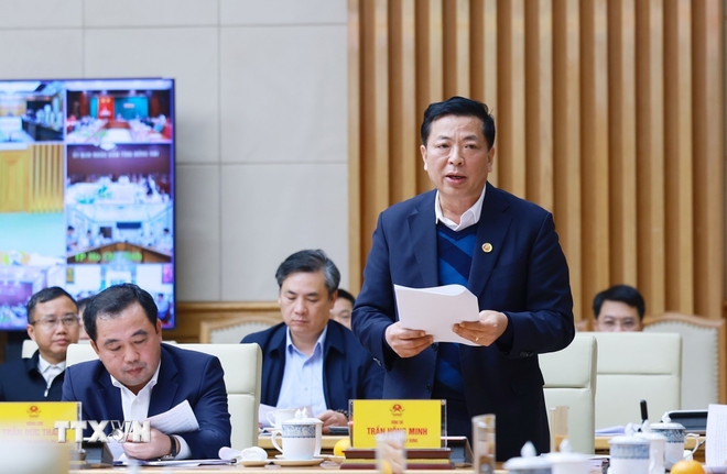 | Bộ trưởng Bộ Xây dựng Trần Hồng Minh báo cáo tình hình triển khai các công trình trọng điểm, dự án quan trọng quốc gia lĩnh vực đường sắt. |