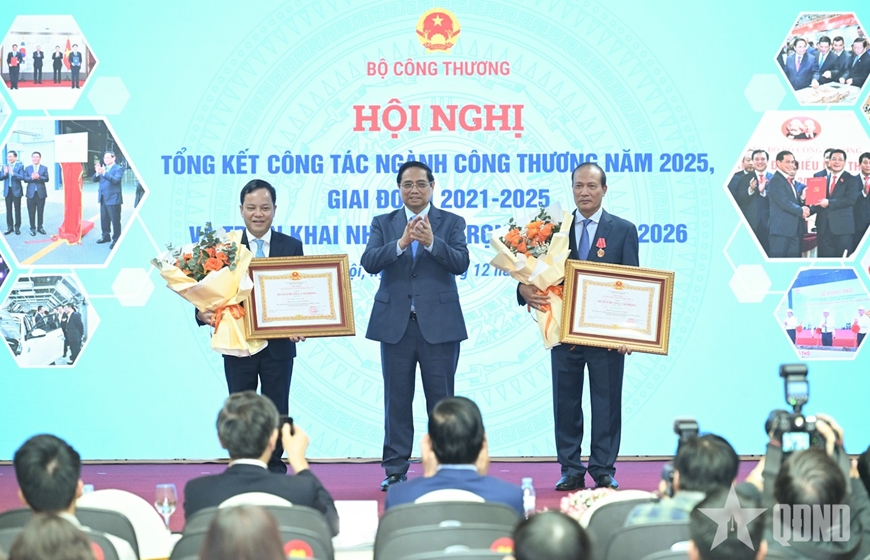 Thủ tướng Phạm Minh Chính trao phần thưởng, Bộ trưởng Bộ Công Thương trao Bằng khen của Thủ tướng Chính phủ tặng các doanh nghiệp có thành tích xuất sắc trong hoạt động xuất khẩu năm 2025.