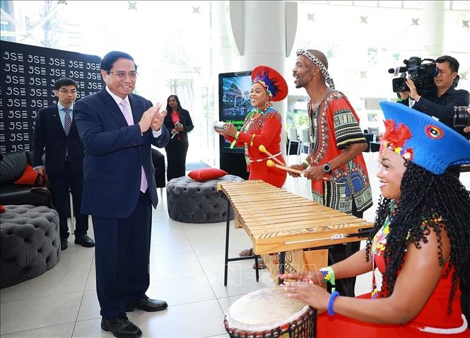| Thủ tướng Phạm Minh Chính tham dự khai trương phiên giao dịch tại Thị trường Chứng khoán Johannesburg. |