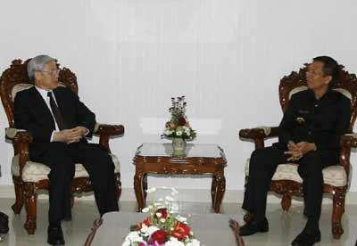 Chủ tịch Quốc hội Nguyễn Phú Trọng và Thống đốc M.M Pa-xti-ca trong buổi gặp ngày 2-3. Ảnh: TTXVN