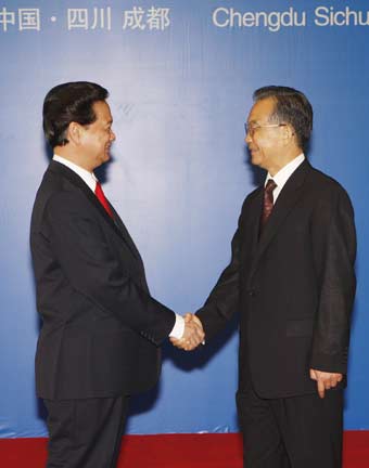 Thủ tướng Ôn Gia Bảo nhiệt liệt hoan nghênh Thủ tướng Nguyễn Tấn Dũng tham dự Hội chợ triển lãm quốc tế miền Tây lần thứ 10 và thăm tỉnh Tứ Xuyên và thành phố Trùng Khánh; bày tỏ tin tưởng rằng chuyến thăm sẽ góp phần quan trọng thúc đẩy quan hệ đối tác hợp tác chiến lược toàn diện Việt Nam - Trung Quốc, đặc biệt là quan hệ hợp tác với các tỉnh miền Tây Trung Quốc. Thủ tướng Ôn Gia Bảo khẳng định Việt Nam là láng giềng hữu nghị và là đối tác quan trọng của Trung Quốc. Đảng, Chính phủ và nhân dân Trung Quốc luôn coi trọng phát triển quan hệ hữu nghị, hợp tác với Việt Nam.