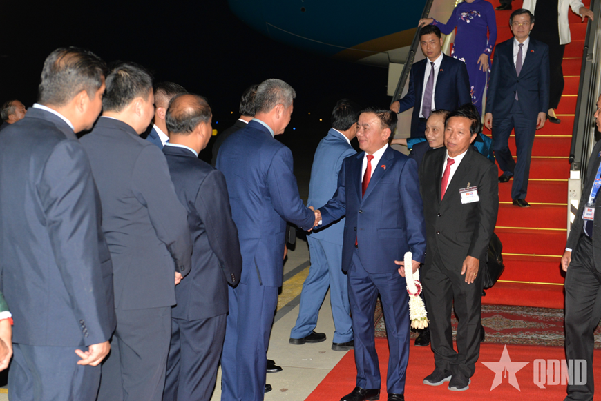 Lãnh đạo các cơ quan Đảng Nhân dân Campuchia đón Thường trực Ban Bí thư Trần Cẩm Tú tại Sân bay Quốc tế Techo.