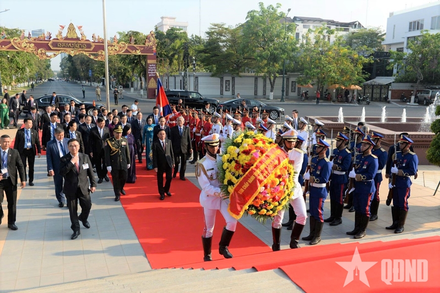 Thường trực Ban Bí thư Trần Cẩm Tú đặt vòng hoa tại Đài Hữu nghị Campuchia - Việt Nam.