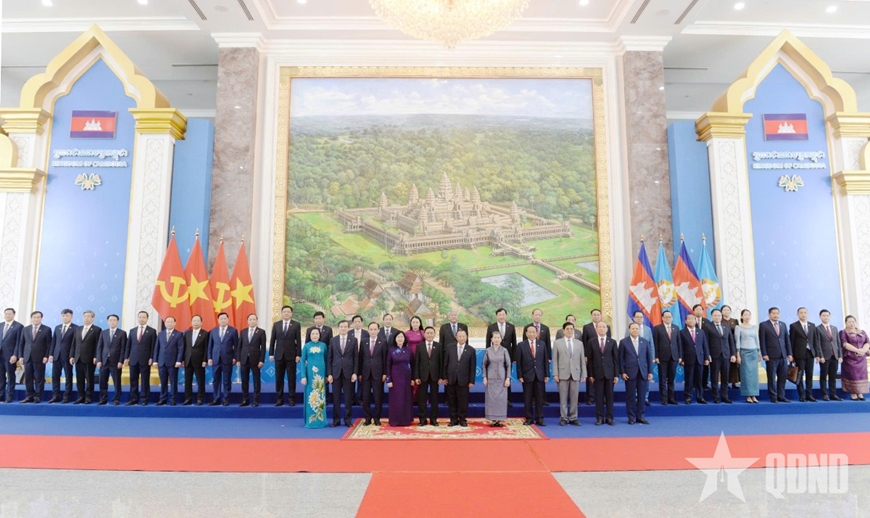 | Thành viên đoàn đại biểu hai bên Việt Nam và Campuchia. |