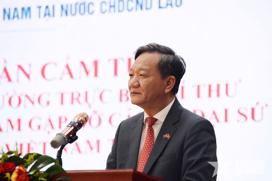Tại buổi gặp gỡ, đồng chí Nguyễn Minh Tâm, Đại sứ Việt Nam tại Lào đã báo cáo với Thường trực Ban Bí thư và Đoàn đại biểu cấp cao Việt Nam: Quán triệt sâu sắc các chủ trương, định hướng lớn của Đảng, Nhà nước, đặc biệt là kết quả các chuyến thăm cấp cao và việc hai bên thống nhất bổ sung nội hàm “gắn kết chiến lược”, Đại sứ quán đã tập trung triển khai đồng bộ, toàn diện các mặt công tác, đạt được nhiều kết quả tích cực.
