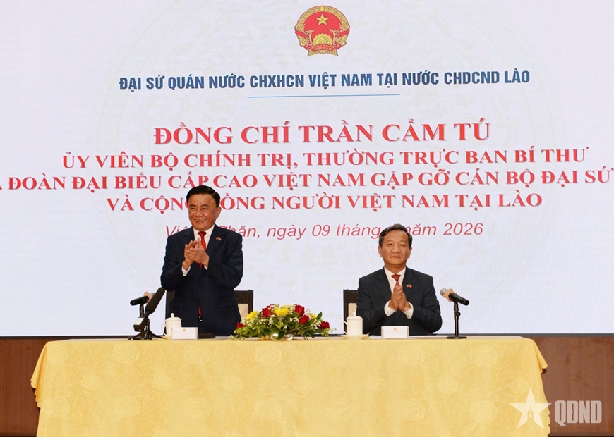 Đồng chí Trần Cẩm Tú bày tỏ vui mừng được thăm lại đất nước Lào tươi đẹp vào thời điểm nhân dân Lào chuẩn bị đón Tết cổ truyền Bunpimay; trân trọng chuyển lời thăm hỏi, chúc mừng nồng nhiệt nhất của Tổng Bí thư, Chủ tịch nước Tô Lâm và các đồng chí Lãnh đạo cấp cao Việt Nam tới đồng chí Thongloun Sisoulith - người bạn, người đồng chí thân thiết của Đảng, Nhà nước và nhân dân Việt Nam, đồng thời chúc mừng đồng chí Tổng Bí thư tiếp tục được tín nhiệm bầu giữ chức Chủ tịch nước Lào nhiệm kỳ 2026-2031.