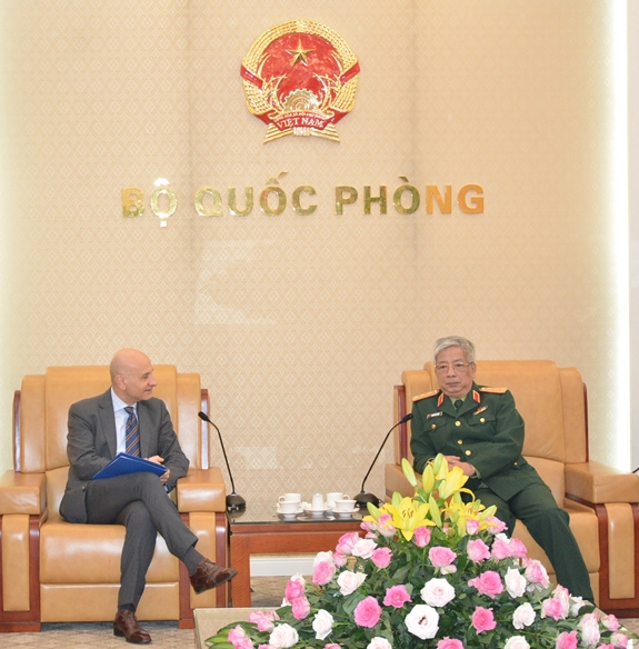 Thượng tướng Nguyễn Chí Vịnh tiếp Đại sứ Italy tại Việt Nam Antonio Alessandro.