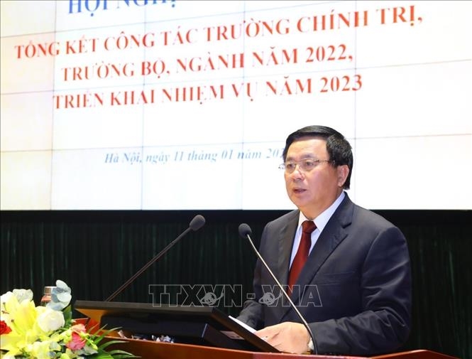 Năm 2022, công tác trường chính trị triển khai có hiệu quả nhiều hoạt động thúc đẩy xây dựng trường chính trị chuẩn theo Quy định số 11-QĐ/TW ngày 19-5-2021 của Ban Bí thư về trường chính trị chuẩn. Các trường chính trị, trường bộ, ngành đã nỗ lực, tiếp tục đổi mới đồng bộ các khâu, từ công tác tuyển sinh, mở lớp, quản lý học viên, thực hiện nội dung, chương trình đào tạo, bồi dưỡng đến tổ chức giảng dạy, thực hiện tốt việc đa dạng hóa các loại hình bồi dưỡng. Các trường chính trị đã tổ chức tổng số 5.002 lớp đào tạo, bồi dưỡng với 390.570 học viên (tăng 171,5% số lớp và tăng 182% số học viên so với năm 2021).