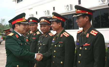 Trung tướng Ngô Xuân Lịch và Đoàn cán bộ chính trị cấp cao QĐND Việt Nam thăm Trung đoàn đặc công 497 của QĐND Lào