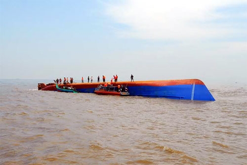 Hiện trường tàu Hoàng Phúc 18 bị chìm tại vùng biển Cần Giờ. (Ảnh chụp ngày 31-10)