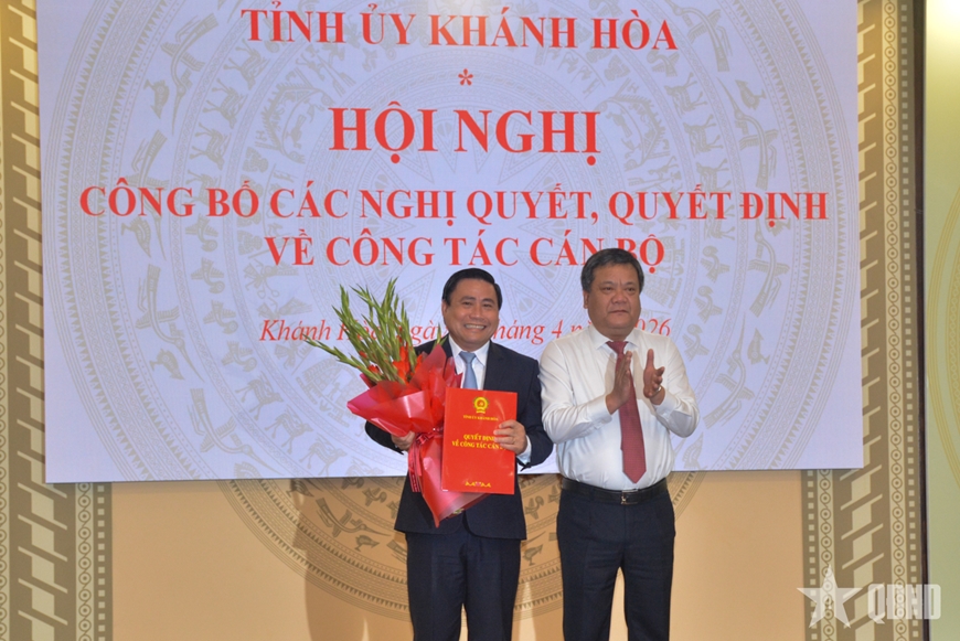 Hội nghị đã công bố Nghị quyết của Ủy ban Thường vụ Quốc hội phê chuẩn kết quả bầu Chủ tịch HĐND tỉnh Khánh Hòa đối với đồng chí Lâm Đông, giữ chức vụ Chủ tịch HĐND tỉnh Khánh Hòa nhiệm kỳ 2026-2031; Quyết định của Thủ tướng Chính phủ về việc phê chuẩn kết quả bầu Chủ tịch UBND tỉnh Khánh Hòa đối với đồng chí Nguyễn Việt Hùng, giữ chức vụ Chủ tịch UBND tỉnh Khánh Hòa nhiệm kỳ 2026-2031.