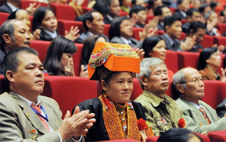 Những đại biểu là dân tộc thiểu số lộng lẫy với các bộ trang phục truyền thống dự đại hội.