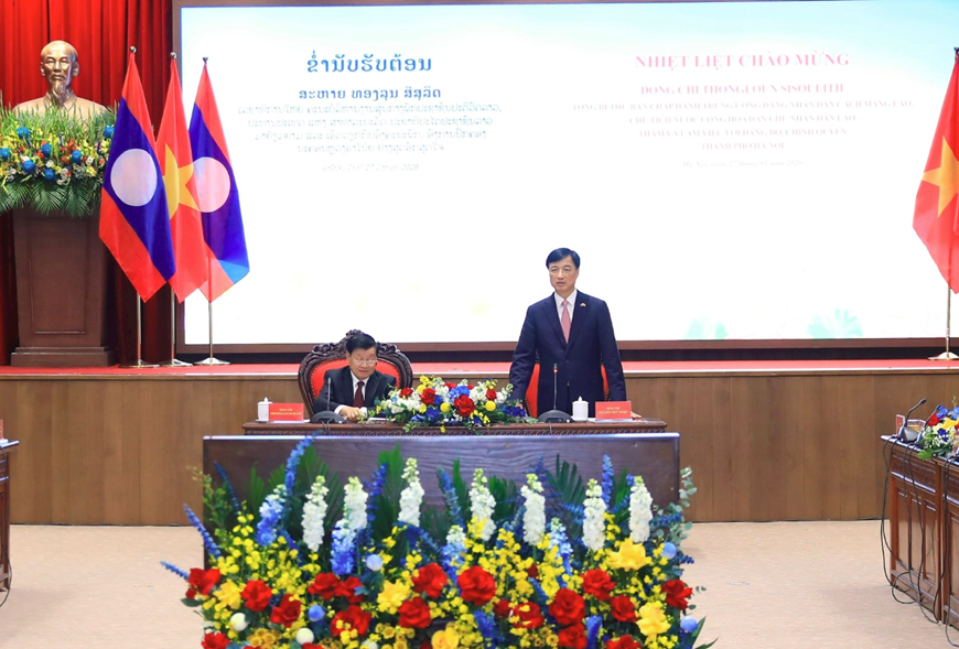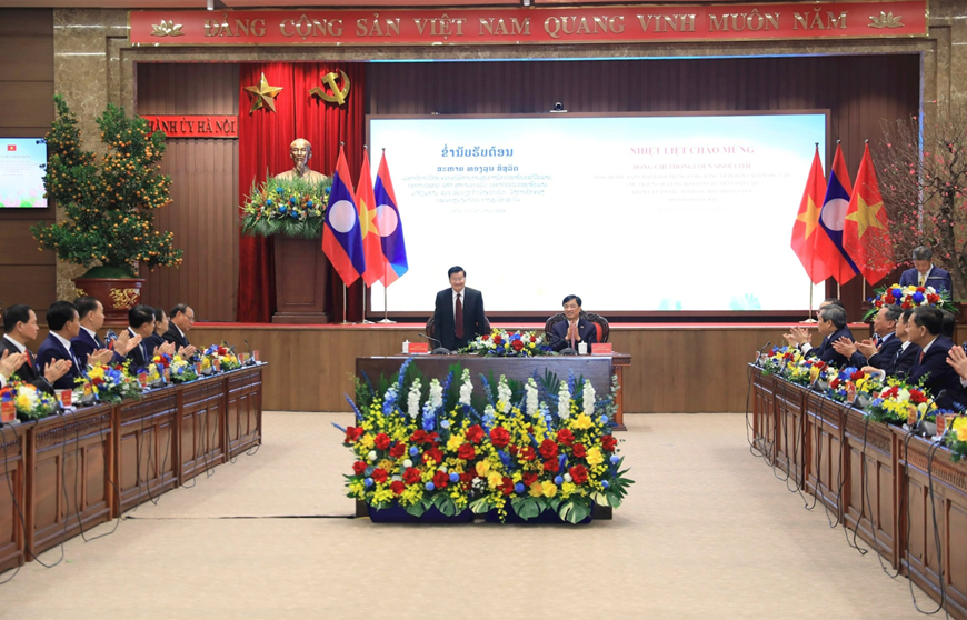 Điểm lại những dấu mốc hào hùng trong chặng đường lịch sử của Thủ đô Hà Nội, đồng chí Thongloun Sisoulith đánh giá cao những thành tựu phát triển, xây dựng của Thủ đô Hà Nội thời gian qua, nhấn mạnh đây đều là những hình mẫu, kinh nghiệm quý báu đối với các đô thị của Lào trong thời gian tới.