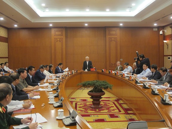 Tổng Bí thư, Chủ tịch nước Nguyễn Phú Trọng phát biểu chỉ đạo tại cuộc họp. Ảnh: TTXVN |