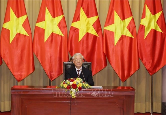 Thông tin về thành công của Đại hội Đại biểu toàn quốc lần thứ XIII của Đảng - sự kiện chính trị quan trọng của Đảng, Nhà nước và nhân dân Việt Nam cùng những nỗ lực trong việc phòng, chống đại dịch Covid-19, Tổng Bí thư, Chủ tịch nước nhấn mạnh, trong thời gian tới, Việt Nam sẽ triển khai việc thực hiện Nghị quyết Đại hội toàn quốc lần thứ XIII của Đảng với nhiều niềm hy vọng, phấn khởi. Tổng Bí thư, Chủ tịch nước mong muốn nhận được sự hợp tác, hỗ trợ quý báu của bạn bè, đối tác và cộng đồng quốc tế, trong đó có các quý quốc mà các Đại sứ đại diện.