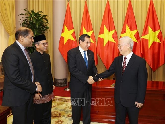 Thay mặt Nhà nước và nhân dân Việt Nam, Tổng Bí thư, Chủ tịch nước Nguyễn Phú Trọng nhiệt liệt hoan nghênh, chào mừng các Đại sứ đặc mệnh toàn quyền của Cộng hòa Panama, Cộng hòa Singapore, Cộng hòa Indonesia tới nhận nhiệm vụ tại Việt Nam.