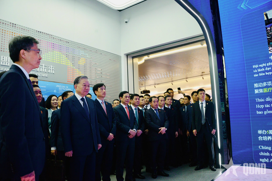Tiếp tục các hoạt động trong khuôn khổ chuyến thăm cấp Nhà nước đến Trung Quốc, sáng 17-4, tại thành phố Nam Ninh (Quảng Tây), Tổng Bí thư, Chủ tịch nước Tô Lâm và đoàn đại biểu cấp cao Việt Nam đã đến thăm Trung tâm Hợp tác đổi mới trí tuệ nhân tạo Trung Quốc-ASEAN.