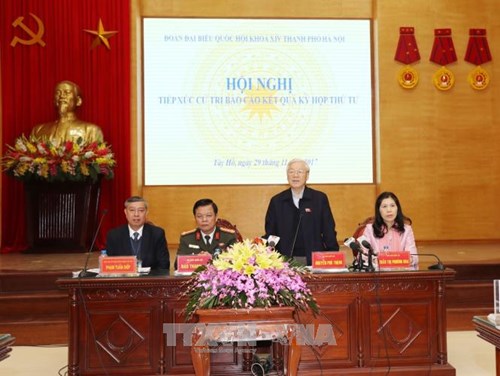 Tổng Bí thư Nguyễn Phú Trọng vui mừng nhận thấy qua các ý kiến phát biểu, đa số cử tri hoan nghênh, đánh giá cao thành công của Kỳ họp thứ 4, Quốc hội khóa XIV, đồng thời cũng chỉ ra hạn chế cần khắc phục nhằm nâng cao hơn nữa chất lượng, hiệu quả hoạt động của Quốc hội.