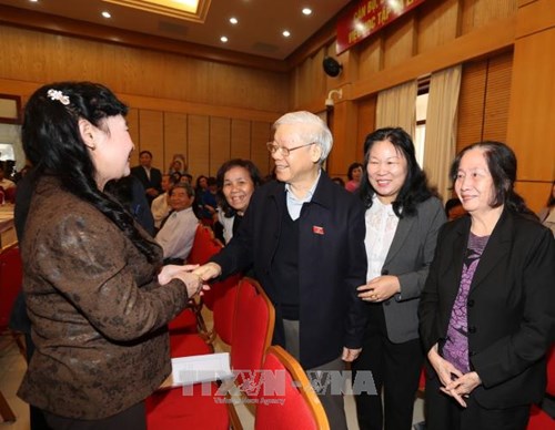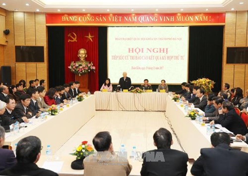 Tổng Bí thư ghi nhận, tiếp thu các ý kiến đóng góp của cử tri, đã đề cập rất cụ thể, chi tiết nhiều vấn đề quan trọng của đất nước, cả cho trước mắt và lâu dài. Qua tiếp xúc cử tri càng hiểu rõ lòng dân; quan hệ giữa đại biểu Quốc hội với cử tri càng thêm gắn bó mật thiết. Cử tri luôn quan tâm sâu sắc các hoạt động của Quốc hội, đóng góp ý kiến xác đáng, trí tuệ và chân thành. Đây không phải là ý kiến riêng của từng cử tri mà thay mặt cho toàn phường, cho phụ nữ…, mỗi người một lĩnh vực, đóng góp rất xác đáng, phong phú, nhiều mặt. Tổng Bí thư cho rằng, mỗi lần tiếp xúc cử tri là một lần được học tập, tiếp thu, khắc phục những hạn chế, để làm tốt hơn những việc chưa làm được.