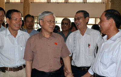 Phát biểu tại buổi tiếp xúc, Tổng bí thư nhấn mạnh: Là ĐBQH, phải cố gắng làm tốt chức năng, nhiệm vụ được giao; phải nắm vững và thực hiện đúng quy chế, quy trình luật định; luôn lắng nghe ý kiến cử tri và góp phần giải quyết những đề xuất, kiến nghị của cử tri. Lắng nghe cử tri để tổ chức hoạt động của Quốc hội tốt hơn, cũng như ban hành các Luật định, pháp lệnh, văn bản hợp với lòng dân.