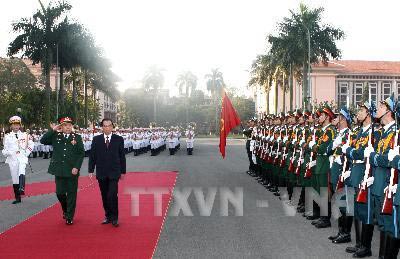 Lễ đón đồng chí Tổng Bí thư Nông Đức Mạnh.
