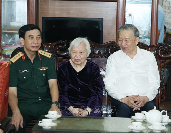 Tổng Bí thư Tô Lâm và đoàn công tác thăm hỏi sức khỏe Mẹ Việt Nam Anh hùng Nguyễn Thị Oanh. |
