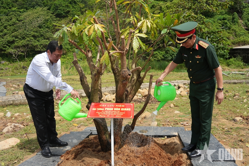 | Đại tướng Phan Văn Giang, Ủy viên Bộ Chính trị, Phó bí thư Quân ủy Trung ương, Bộ trưởng Bộ Quốc phòng trồng cây lưu niệm phía sau khu tưởng niệm. |