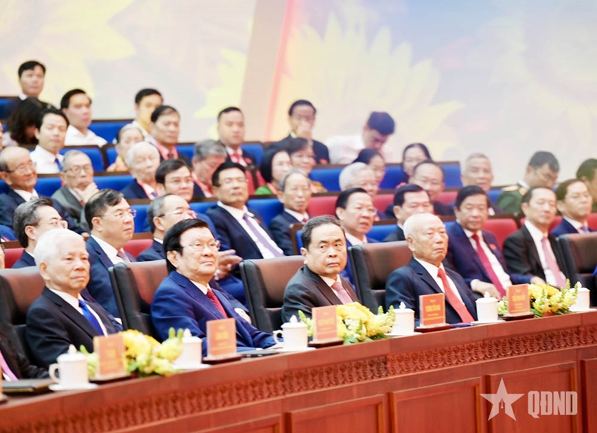 Các đồng chí lãnh đạo, nguyên lãnh đạo Đảng, Nhà nước và các đại biểu dự đại hội. |