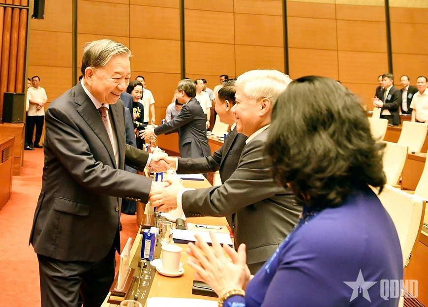 Cùng dự có: Chủ tịch nước Lương Cường; Thủ tướng Phạm Minh Chính; Chủ tịch Quốc hội Trần Thanh Mẫn, Chủ tịch Hội đồng Bầu cử quốc gia; Trần Cẩm Tú, Ủy viên Bộ Chính trị, Thường trực Ban Bí thư.