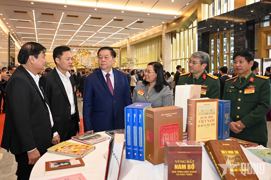 Trước giờ khai mạc hội nghị, các đồng chí lãnh đạo Đảng, Nhà nước cùng đông đảo đại biểu đã tham quan không gian trưng bày sách, triển lãm ảnh và thành tựu chuyển đổi số trong báo chí tại Trung tâm triển lãm Quốc gia.