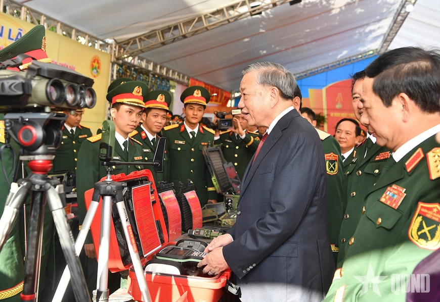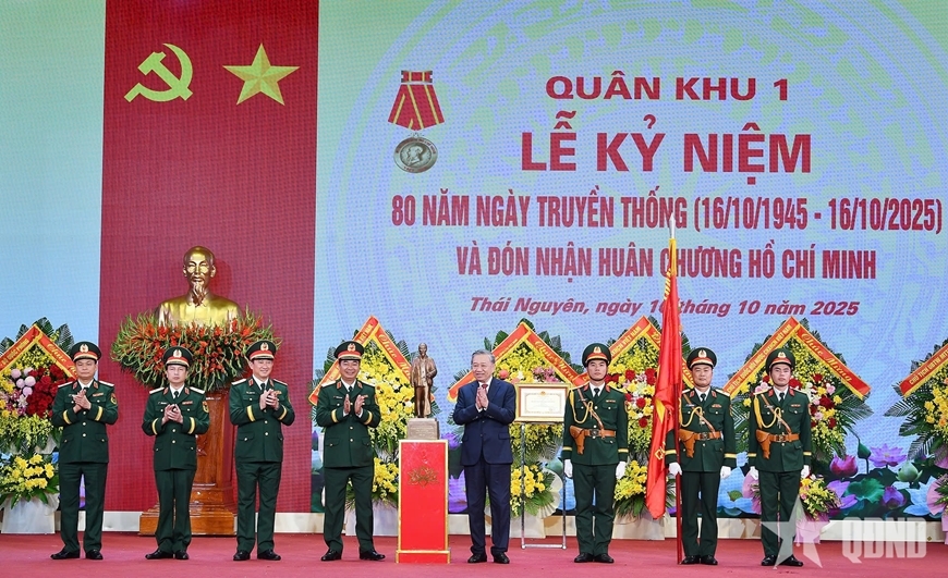 Phát biểu tại lễ kỷ niệm, Tổng Bí thư Tô Lâm gửi lời chúc mừng tốt đẹp nhất tới các thế hệ cán bộ, chiến sĩ, ghi nhận và biểu dương những chiến công, thành tích mà cán bộ, chiến sĩ LLVT Quân khu 1 đã đạt được trong 80 năm qua.