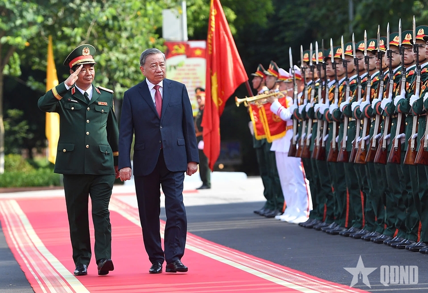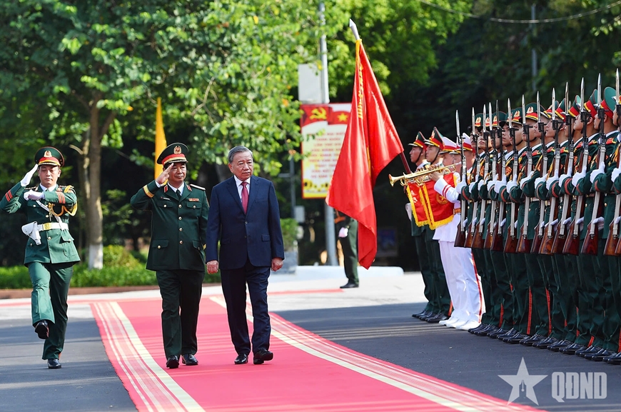 Lễ đón Tổng Bí thư Tô Lâm, Bí thư Quân ủy Trung ương tại Bộ tư lệnh Quân khu 1. |