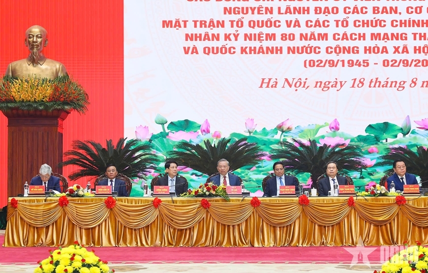 Chương trình gặp mặt nhằm ôn lại truyền thống lịch sử cách mạng vẻ vang của Đảng, dân tộc nhân kỷ niệm 80 năm Cách mạng Tháng Tám thành công (19-8-1945 / 19-8-2025) và Quốc khánh nước Cộng hòa xã hội chủ nghĩa Việt Nam (2-9-1945 / 2-9-2025); thể hiện sự quan tâm sâu sắc của Đảng, Nhà nước đối với các đồng chí lão thành cách mạng, các đồng chí nguyên Ủy viên Trung ương Đảng, các đồng chí nguyên lãnh đạo của các cơ quan của Đảng, Mặt trận Tổ quốc Việt Nam, các tổ chức chính trị-xã hội ở Trung ương; ghi nhận, tri ân những cống hiến, đóng góp to lớn của các đồng chí đối với sự nghiệp đấu tranh giải phóng dân tộc, xây dựng và bảo vệ Tổ quốc Việt Nam xã hội chủ nghĩa; lắng nghe ý kiến đóng góp quý báu, trách nhiệm, tâm huyết, trí tuệ được kết tinh giữa kinh nghiệm thực tiễn sâu sắc và tầm nhìn chiến lược của các đồng chí nguyên lãnh đạo Đảng, Nhà nước và các đại biểu đã từng chèo lái con thuyền cách mạng của đất nước ta.
