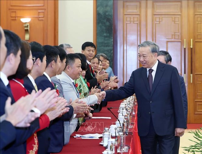 Tại buổi gặp mặt, Tổng Bí thư Tô Lâm chúc mừng toàn thể cán bộ, hội viên Hội Nông dân Việt Nam nhân kỷ niệm 95 năm Ngày thành lập Hội và chúc mừng, khen ngợi 95 nông dân xuất sắc và nhà khoa học của nhà nông năm 2025.