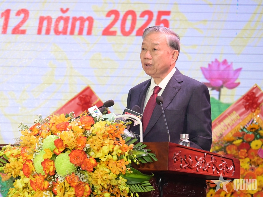 | Tổng Bí thư Tô Lâm phát biểu chỉ đạo tại lễ kỷ niệm. |
