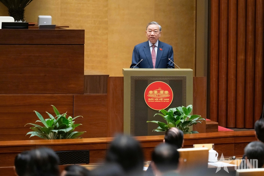 | Tổng Bí thư Tô Lâm phát biểu tại phiên khai mạc Kỳ họp thứ nhất, Quốc hội khóa XVI. Ảnh: quochoi.vn |
