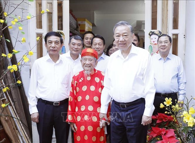 | Tổng Bí thư Tô Lâm thăm, chúc Tết nhà nghiên cứu Nguyễn Đình Tư. |