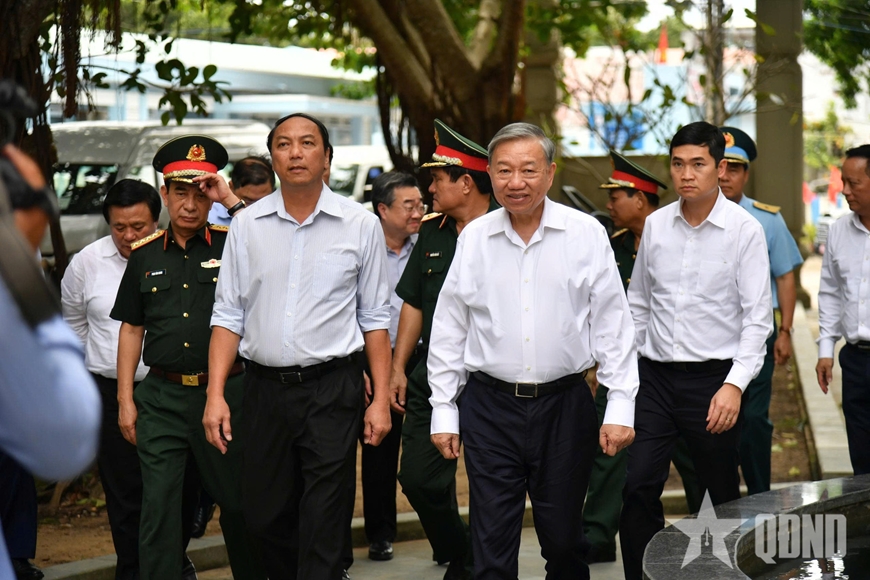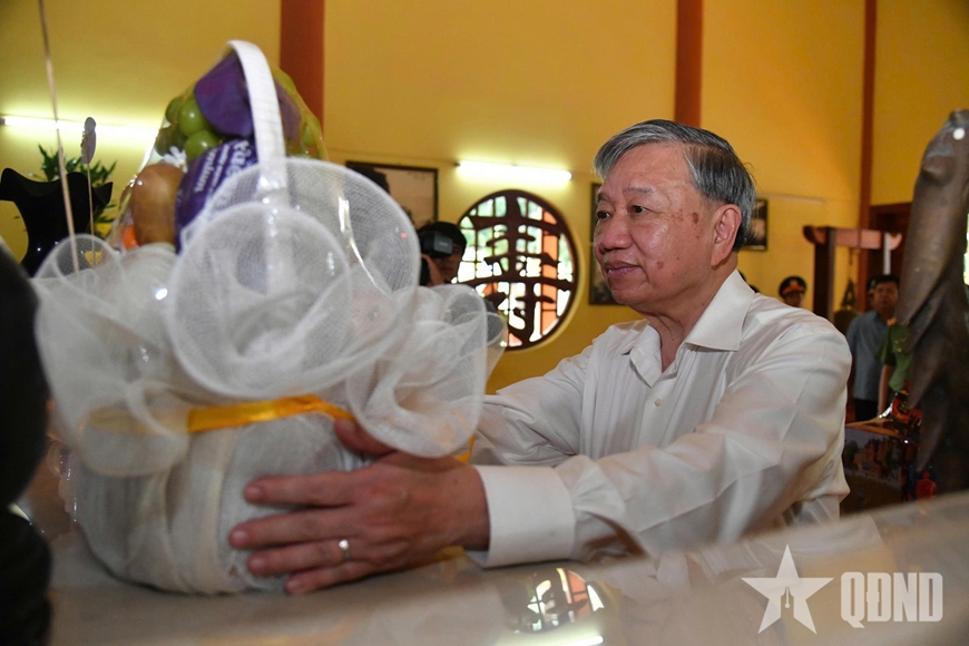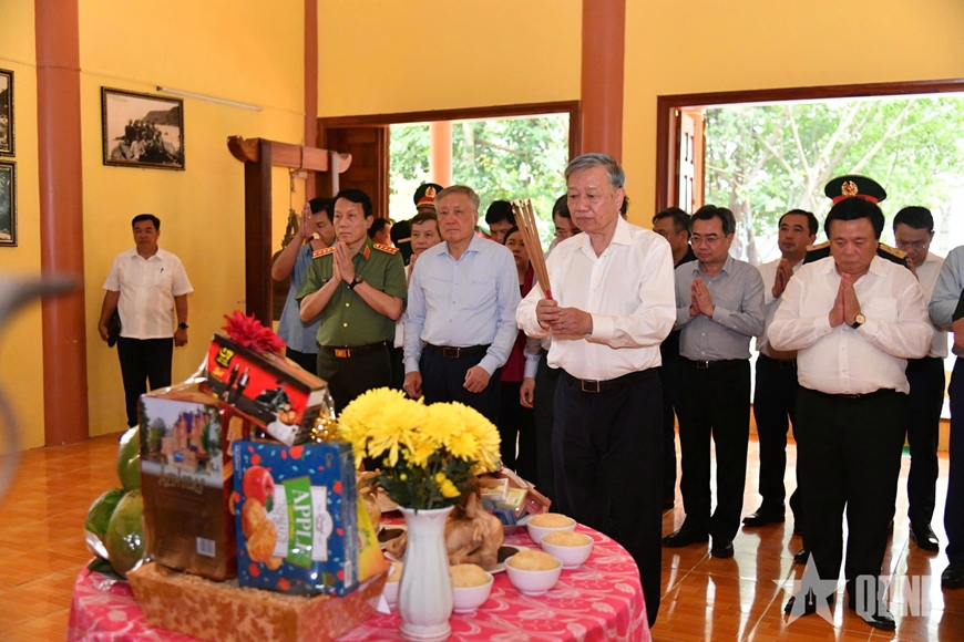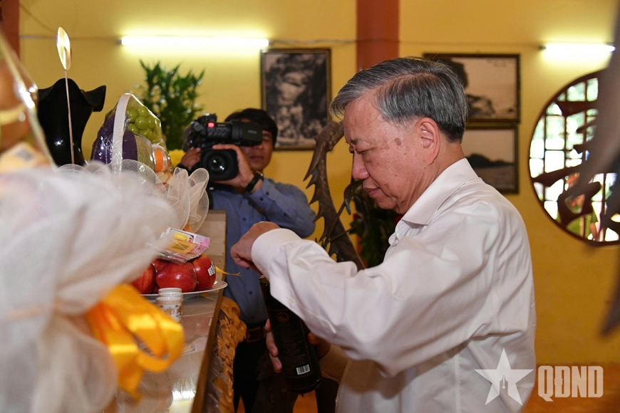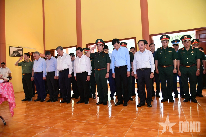 | Tổng Bí thư Tô Lâm dâng hương tưởng nhớ, bày tỏ lòng tri ân sâu sắc công lao to lớn của Chủ tịch Hồ Chí Minh, các anh hùng liệt sĩ, chiến sĩ hy sinh. |