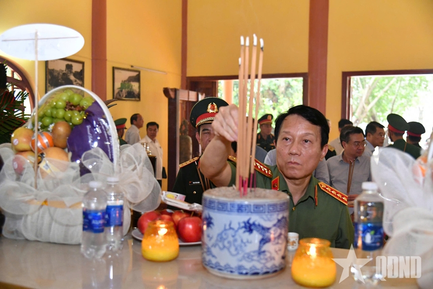 | Đại tướng Lương Tam Quang, Bộ trưởng Bộ Công an dâng hương tại Đền thờ Thổ Châu. |