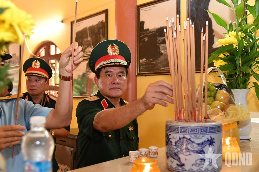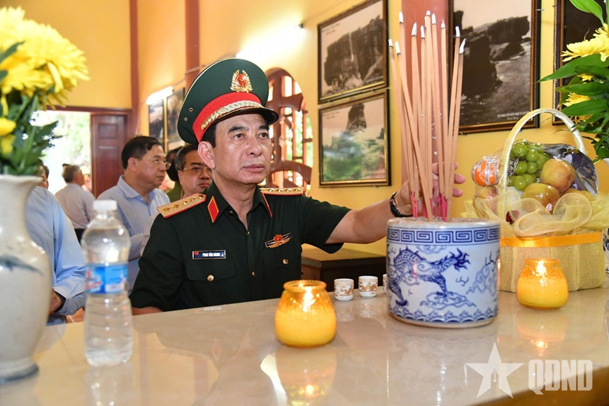 | Đại tướng Phan Văn Giang, Ủy viên Bộ Chính trị, Phó bí thư Quân ủy Trung ương, Bộ trưởng Bộ Quốc phòng dâng hương tại Đền thờ Thổ Châu. |