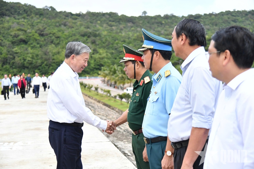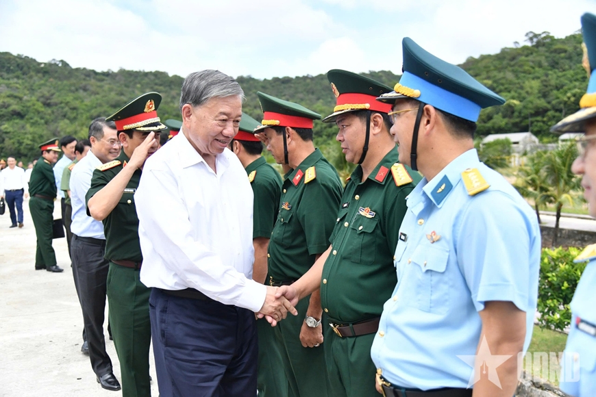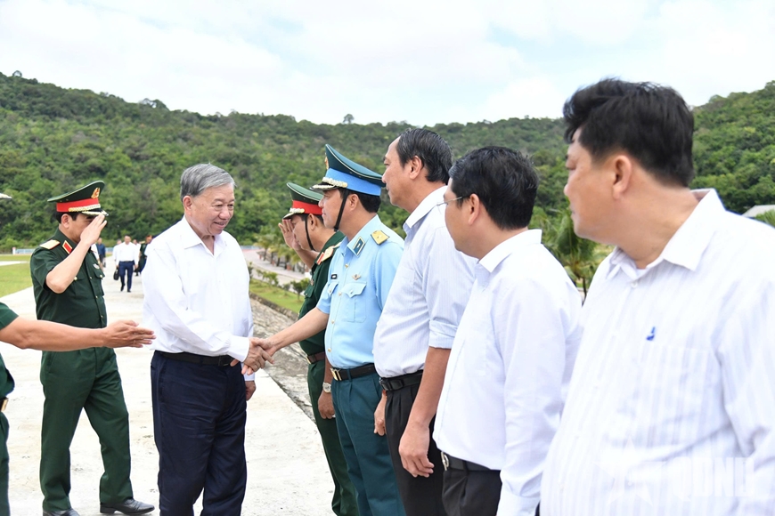 Tổng Bí thư Tô Lâm cùng đoàn công tác Trung ương thăm, làm việc với các đơn vị Quân đội và Đảng bộ, chính quyền địa phương tại Đặc khu Thổ Châu (tỉnh An Giang).