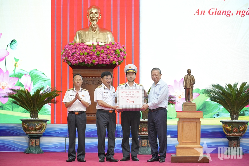 Khẳng định Đảng và Nhà nước luôn quan tâm xây dựng Quân đội và Quân chủng Hải quân ngày càng lớn mạnh, Tổng Bí thư Tô Lâm bày tỏ tin tưởng cán bộ, chiến sĩ Hải quân sẽ tiếp tục phát huy truyền thống anh hùng, vượt qua khó khăn, thử thách, hoàn thành xuất sắc mọi nhiệm vụ được giao, góp phần bảo vệ vững chắc chủ quyền biển đảo thiêng liêng của Tổ quốc, xứng đáng với niềm tin yêu của Đảng, Nhà nước và nhân dân.