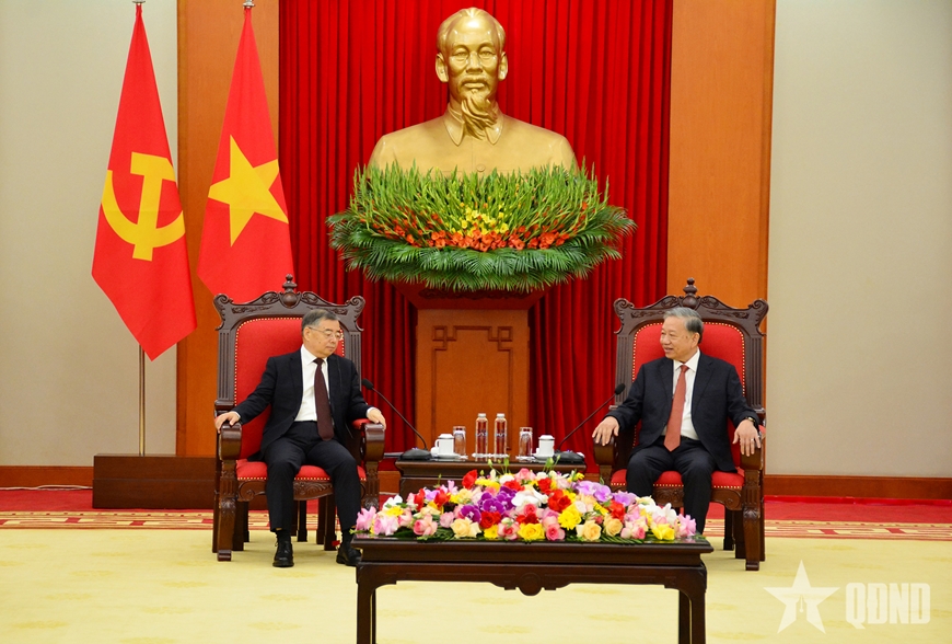 | Tổng Bí thư Tô Lâm tiếp Trưởng ban Tuyên truyền Trung ương Đảng Cộng sản Trung Quốc. |